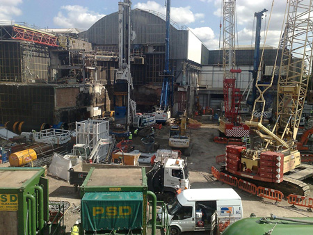 I use the public subway system to arrive at London Bridge Subway station to get to work. I took this picture [see below]. In the picture you see the work that is going on on the ground to start this tall building.