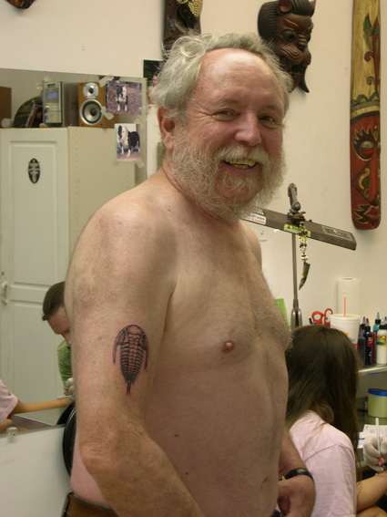 That lovely trilobite tattoo now resides on Michael Ruse’s right arm, thanks to a dare from one of his students.