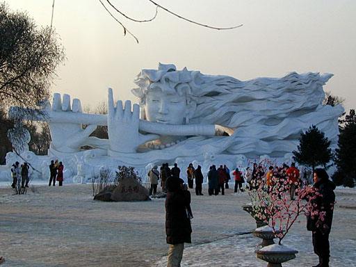 “The temperature in Harbin reaches forty below zero, both Fahrenheit and Celsius, and stays below freezing nearly half the year. The city is actually further north than notoriously cold Vladivostok, Russia, just 300 miles away. So what does one do here every winter? Hold an outdoor festival, of course! Rather than suffer the cold, the residents of Harbin celebrate it, with an annual festival of snow and ice sculptures and competitions.”